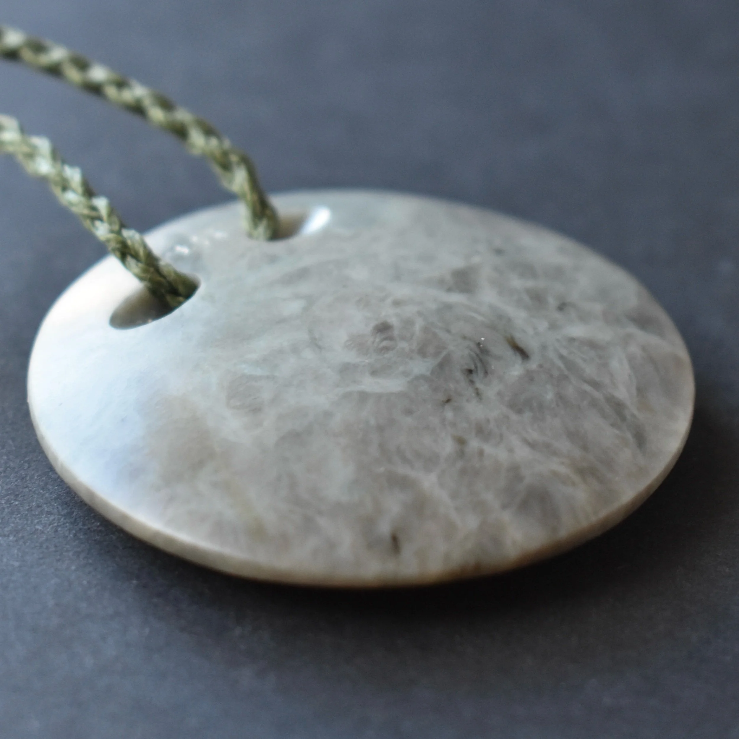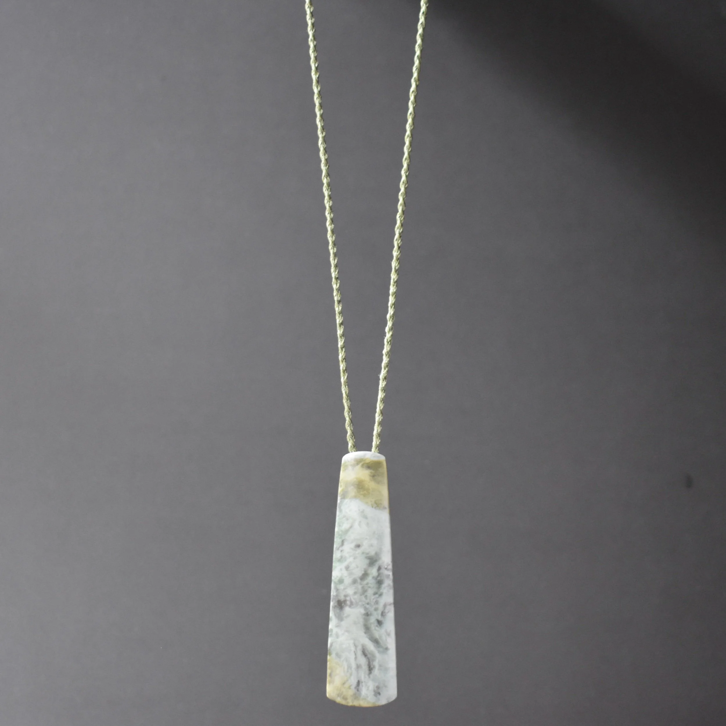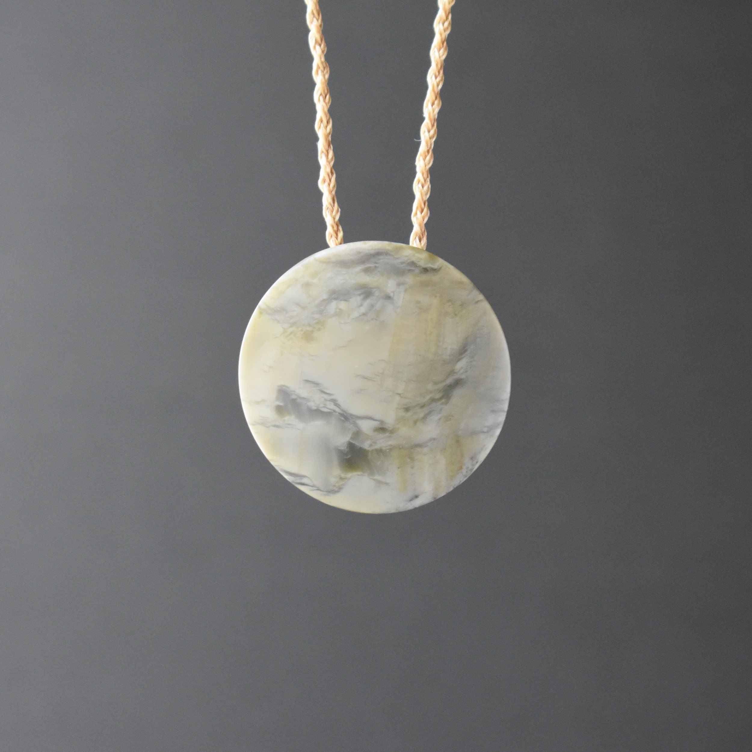 Each piece comes strung on an adjustable, waxed-polyester, braided cord.