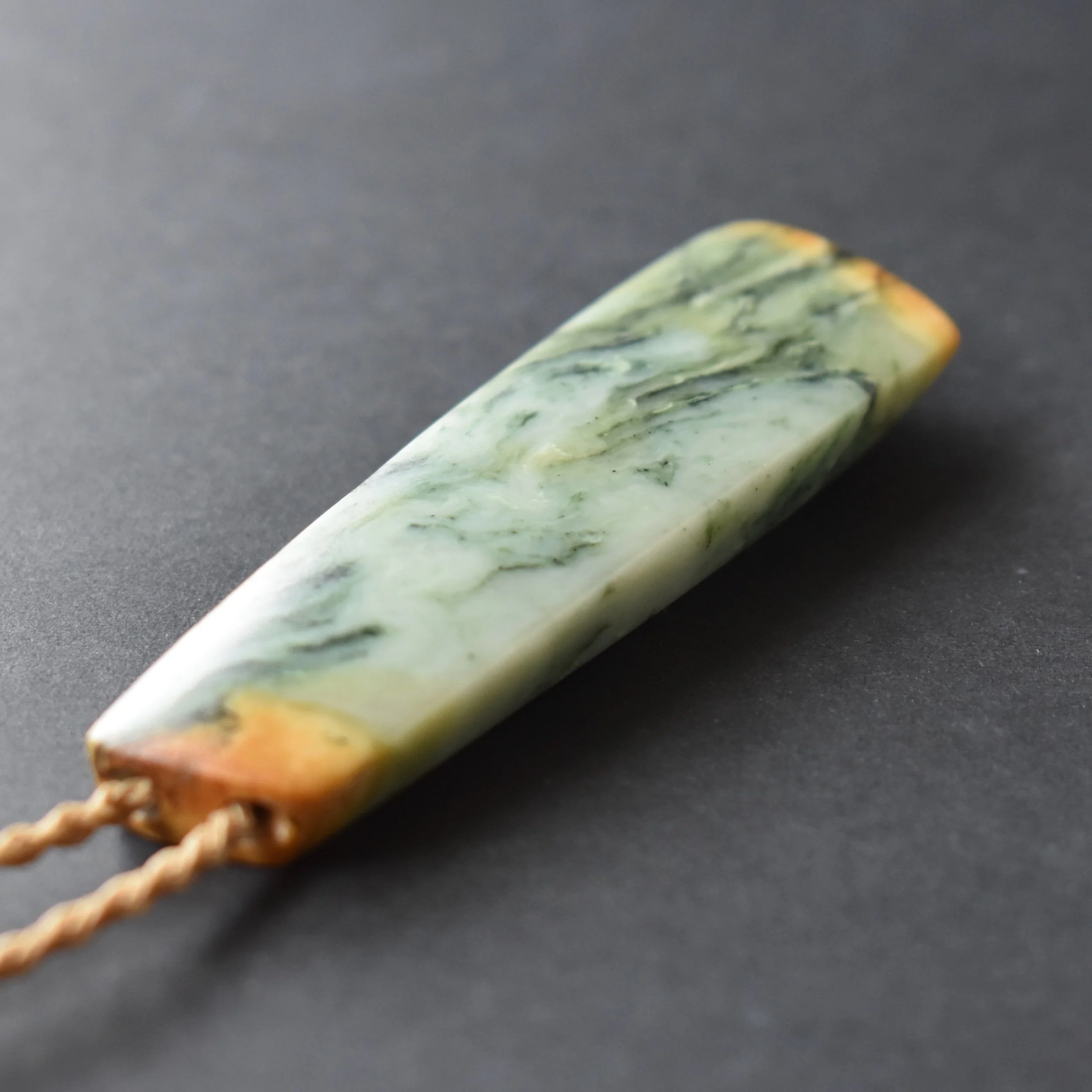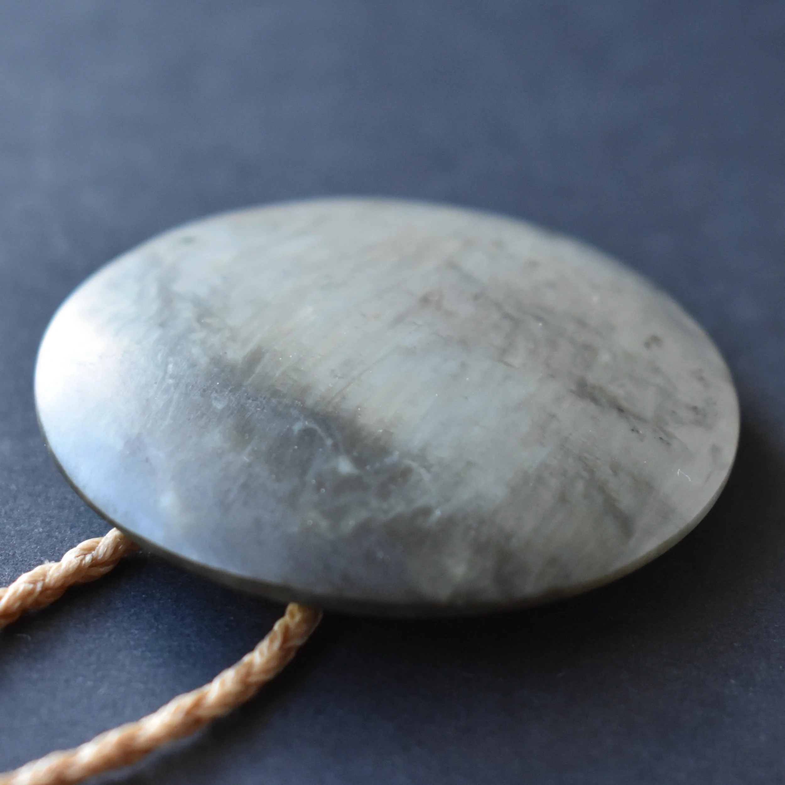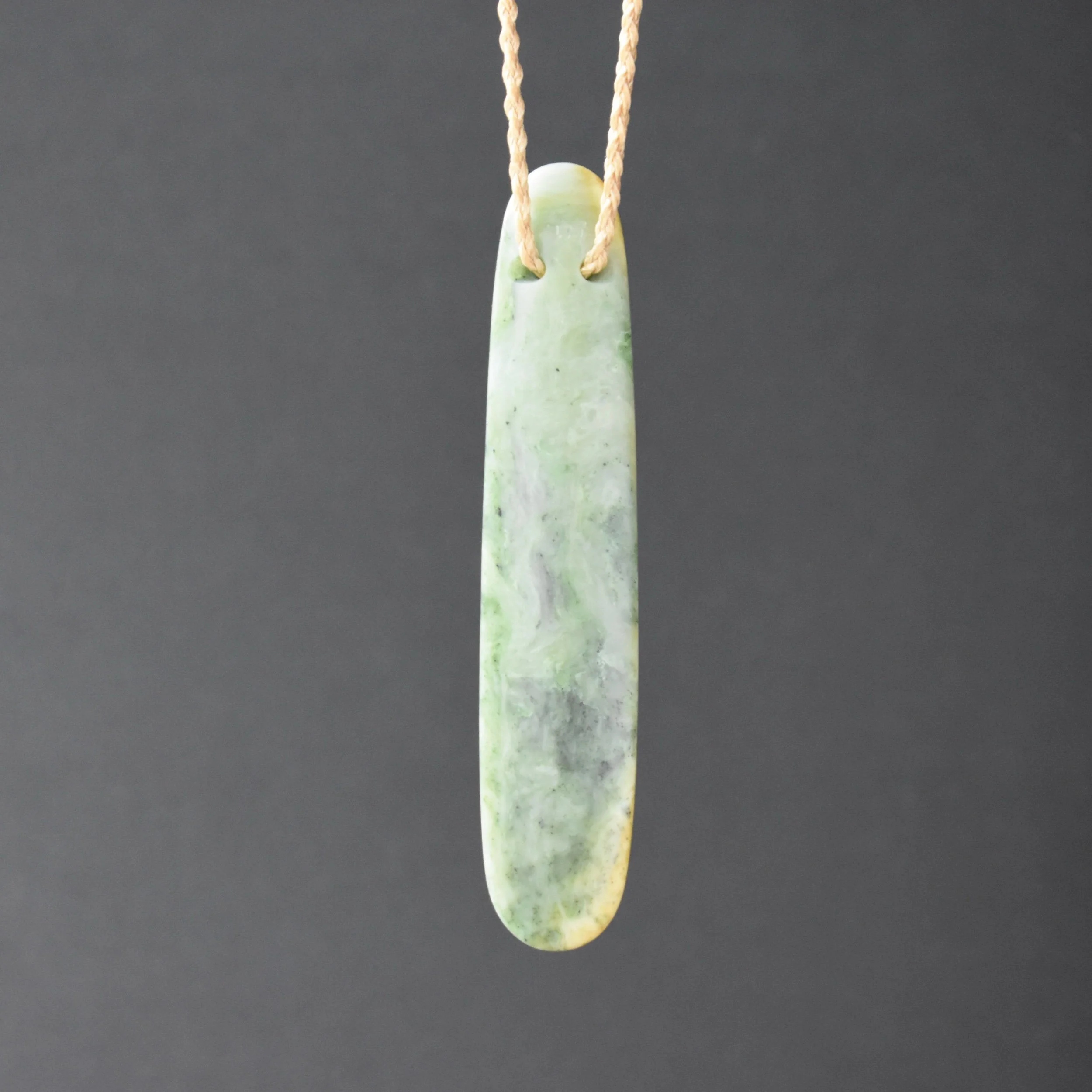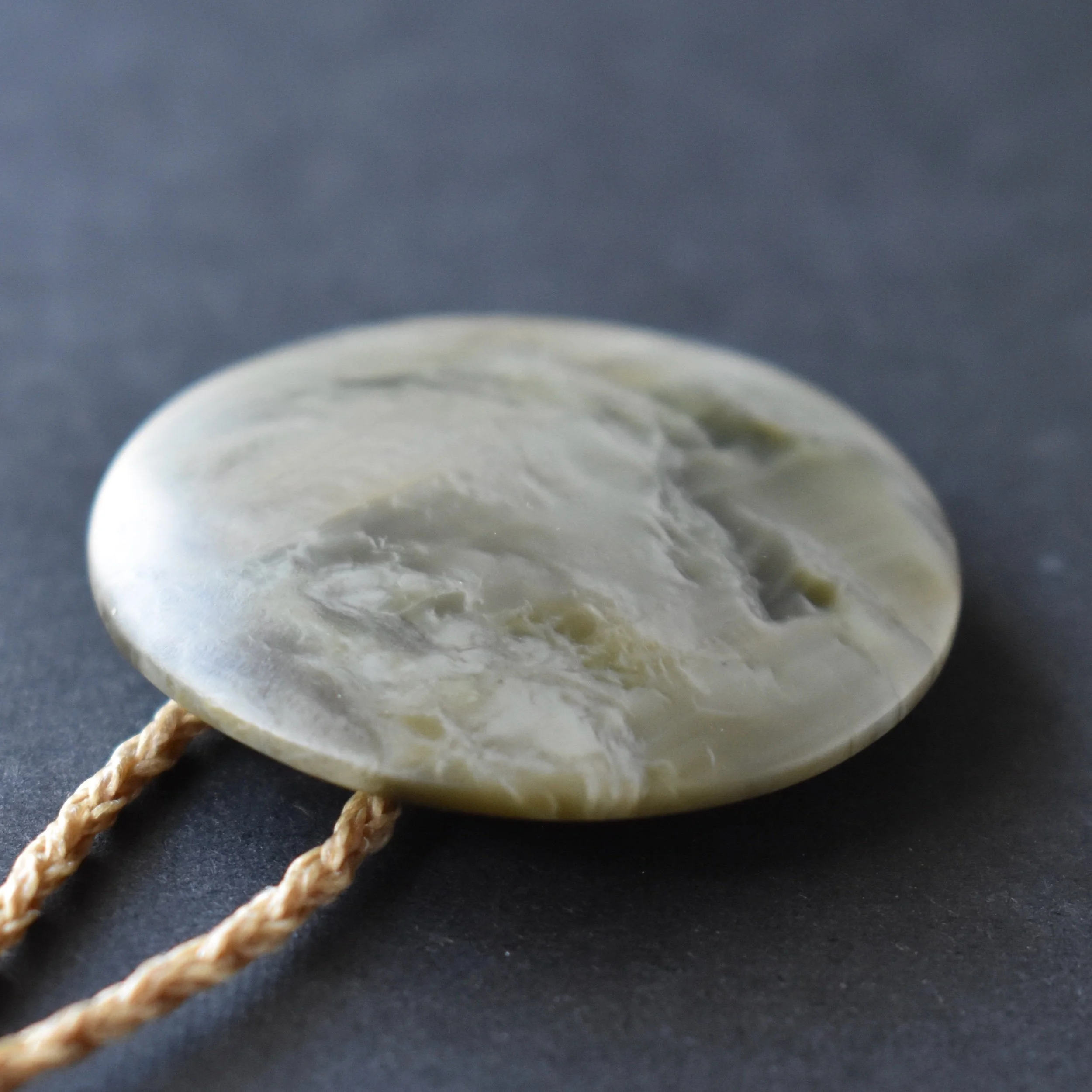 Each piece comes strung on an adjustable, waxed-polyester, braided cord.